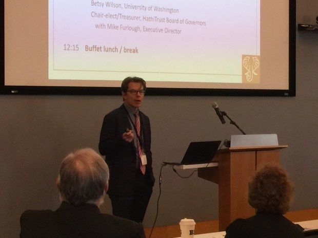 See below my action shot of @mikefurlough Executive Director of the HathiTrust.
