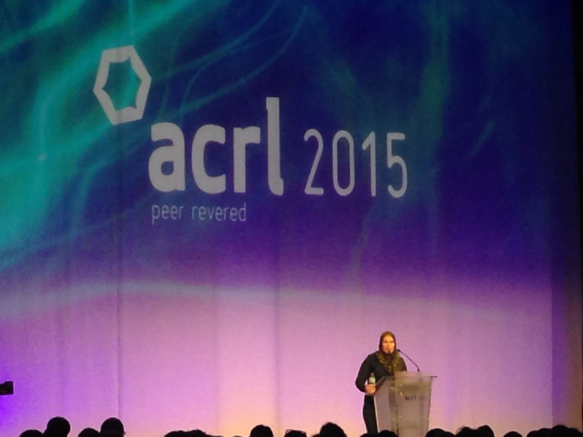 The opening keynote for #ACRL2015 is G. Willow Wilson (@GWillowWilson) who is the author of the critically acclaimed comic book Ms. Marvel. Her talk was very refreshing and brought some interesting perspectives to the overall conference. If you have not seen it you should check out the ACRL poster of Ms. Marvel – http://www.acrl.ala.org/acrlinsider/archives/9354.